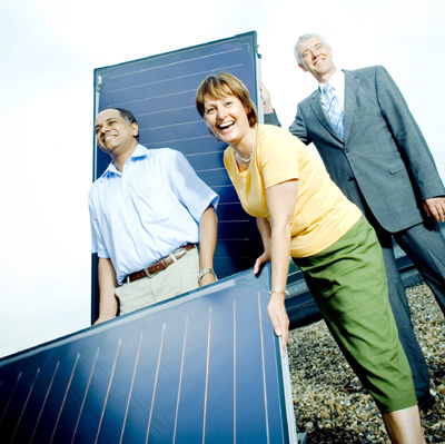 Grupo Bosch . Como ejemplo, no sólo nombró los sistemas eficientes de accionamiento para el coche, también se refirió a los sistemas de aprovechamiento de las energías renovables, como la energía eólica, las energías geotérmicas, los colectores solares y la fotovoltaica; entre otras. Con este amplio portfolio de productos,