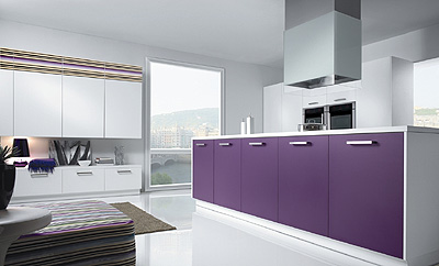 Varese , un modelo en polilaminado con tirador integrado del mismo material, disponible en una variada gama de colores a elegir. Además, las gamas actuales se amplían en laminados con tonalidades como nogal, morados y lilas, así como estéticas texturizadas en madera.