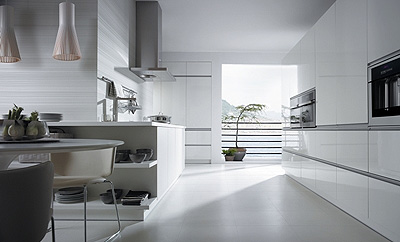 Nova Plus y Nova Silver , modelos en laminado brillo con tirador integrado en aluminio, canteado en ABS y en aluminio respectivamente, y