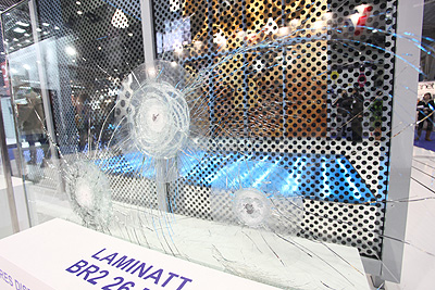 seguridad antibala . Un acristalamiento transparente compuesto por varias hojas unidas por láminas de PVB (butiral de polivinilo).