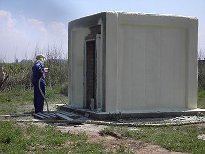 Este estudio, es uno de los primeros en medir el rendimiento general de los aislantes térmicos en condiciones que reflejan la vida real. Se midió y monitorizó el comportamiento energético de cuatro cubículos construidos en Puigverd (Lérida) con unas dimensiones de 2,4x2,4x2,4 m conforme a las prácticas de construcción más usuales en la región mediterránea y, concretamente, en España. En tres de estos cubículos se instalaron diferentes materiales aislantes (espuma proyectada de celda cerrada, lana mineral y poliestireno extruido), mientras que en el cuarto se prescindió del aislamiento, para utilizarlo como referencia básica en los ensayos.