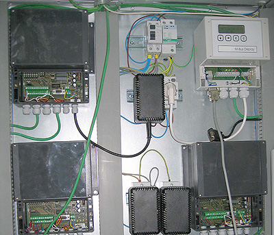 Finalmente se eligió la capacidad de los medidores Sensus PolluCom E para la calefacción y Sensus 120 para el ACS. Estos equipos transmiten los datos de cada vivienda hasta un convertidor de señal M-Bus de