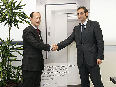 ThyssenKrupp Elevator Manufacturing Spain y que corresponden a siete ascensores instalados por la compañía que cumplen con la norma de clasificación VDI 4707. Este estándar, precursor de la ISO 25745-1 establece una categorización energética de los ascensores basada en su categoría de uso (lugar donde se instalan e intensidad del uso), así como en sus consumos en marcha y stand-by. Esta clasificación va de la A a la G, siendo la primera la más eficiente.