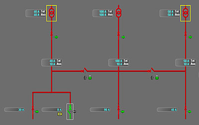 La librería esta constituida por el gestor de la instalación, fuentes de energía, interruptores, cargas y embarrados. Todos ellos bloques de función configurables desde el subsistema de control y parametrizables desde el subsistema de supervisión.