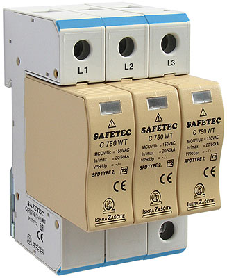 Cada Safetec C(R) WT con diseño modular se distingue por conexiones TN-C, protección de modos L-PEN, rango de temperatura operativa de -40 a +80°C, grado de protección IP20 y contacto de teleseñalización (versiones CR). También se caracteriza por eliminar la necesidad de fusible previo que facilite su desconexión.
