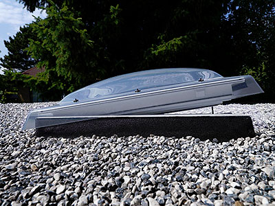 Está realizada en PVC 100% reciclable y respetuoso con el medioambiente (no contiene plomo ni metales pesados), la hoja de la ventana incorpora de serie un doble acristalamiento aislante de seguridad laminado con gas Argón, y la cúpula exterior está realizada en material acrílico PMMA de gran calidad (disponible en acabado transparente o traslúcido). Permite incorporar una cortina plisada.