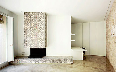También se reutilizaron cerámicas y mosaicos en la construcción de las nuevas chimeneas, que se convierten de ese modo en elementos focales de los espacios en los que se sitúan, aportándoles calidez y una cierta presencia de los pasados del lugar.