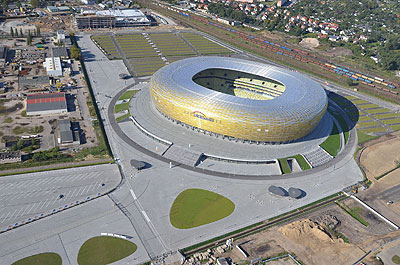 El PGE Arena de Gdansk, en el que se jugarán los partidos del Grupo C y uno de los partidos de cuartos de final, tiene una capacidad para 41.500 espectadores. AGC suministró 2.000 m² de vidrio para la construcción de la primera planta y de los palcos de la zona de tribuna. Se escogió Planibel Top N+ (la versión de vidrio laminado de seguridad Stratobel) por su alto nivel de aislamiento térmico y transmisión luminosa.