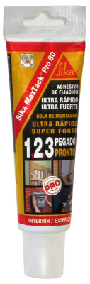 Sika® MaxTack Pro 80 es un adhesivo de montaje multiusos de fuerte agarre para: fijación y montaje de diversos tipos de elementos como rodapiés, forrado de armarios, maderas, zócalos, hormigón, yeso, corcho, metales, PVC, etc.