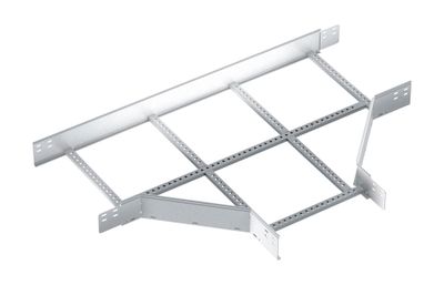 Accesorio metálico con borde de seguridad soldado, sistema enchufable para la construcción de una derivación en T en cualquier punto de la bandeja Megaband®. Ala de alto 60 mm, ancho 500 mm. Montaje de conexión rápida mediante el sistema click, sin uniones. Fabricado en acero en diversos tamaños y sistemas de protección. Radio de curvatura 300 mm. Consultar disponibilidad de radio 600 mm. Con sistema de protección PG