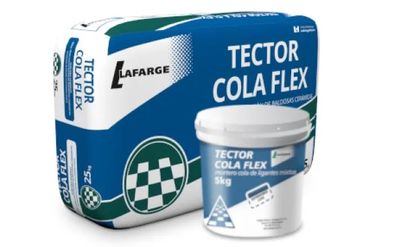 Adhesivo cementoso tipo C2TE S1 Tector Flex de Holcim a base de cemento blanco y gris, áridos calcáreos y silíceos, resinas, aditivos orgánicos e inorgánicos, con deslizamiento vertical nulo y tiempo abierto prolongado. Indicado para la colocación de baldosas cerámicas en pavimentos o revestimientos interiores y exteriores, gran formato y baja porosidad. Especial fachadas, soportes deformables, piedra natural, revoques de mortero, placas de cartón yeso, hormigón o ladrillo, superposición cerámica y recrecido calefactantes, según norma EN 12004.
