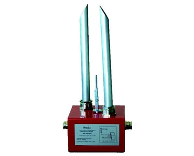 Equipo fabricado por AGUILERA ELECTRÓNICA, formado por un detector óptico algorítmico AE/SA-OPI y caja metálica provista con piloto de alarma, racor para entrada de cables y racores para tubos sondas que toman las muestras del interior de los conductos.
