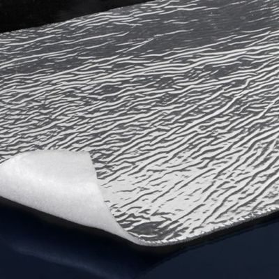 Aislamiento acústico a impacto Tripomat Floopar, referencia TR/F. Laminas: polietileno metalizado y espuma de polietileno de 2 mm de espesor
