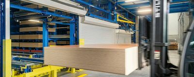 Es completamente nuevo el concepto de utilizar las ventajas de la expedición en dos etapas: La carga y descarga de paquetes en el almacén es asumida por un equipo de manejo de estanterías. Si un pedido de envío requiere la expedición de diferentes tableros individuales, un manipulador de vacío tendrá los correspondientes artículos listos para su envío, por lo que se pueden procesar varios pedidos en paralelo.