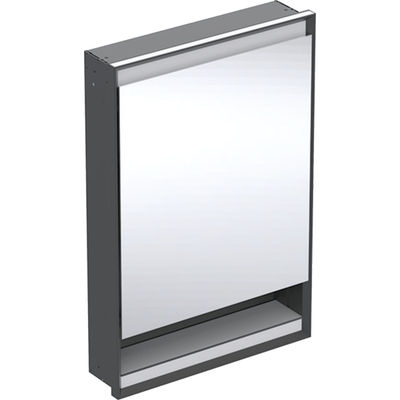 Armario con espejo Geberit ONE con nicho y ComfortLight, con una puerta, montaje empotrado, 90 cm de altura: B=60cm, Negro mate / Aluminio con pintura polvo al horno, Puerta=Lado de fijación a la derecha
