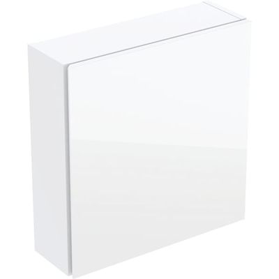 Armario suspendido Geberit cuadrado, con una puerta: 45x46.7cm, Cuerpo: blanco/cubierto alto brillo, Frontal: blanco/vidrio brillante