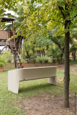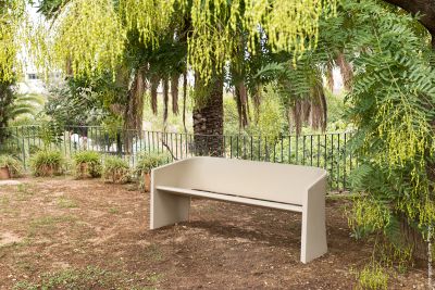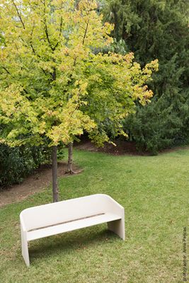Con la sobria sensualidad que caracteriza el diseño de sus autores, el banco Bruno resuelve uno de los principales desafíos del banco de exterior: encontrar el equilibrio entre la resistencia a las condiciones atmosféricas y el confort del usuario. La altura e inclinación del asiento, el ángulo del respaldo y la curva del reposabrazos buscan recoger la zona lumbar en una posición natural de descanso. Los laterales curvos dan rigidez, y la inclinación del plano de asiento y la abertura trasera permiten drenar las aguas pluviales. Sólido y resistente pero de líneas estilizadas y aspecto ligero, el banco Bruno traslada al espacio urbano y al jardín la experiencia del confort doméstico.