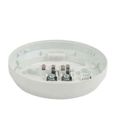 Base de conexión de perfil bajo para la gama de detectores convencionales y analógicos de la serie 100. Contactos inoxidables. Color blanco.