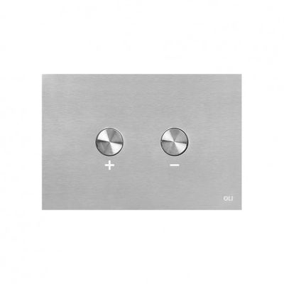 Pulsador para cisterna OLI modelo BLINK fabricado en acero inox. Accionamiento neumático. Doble descarga.