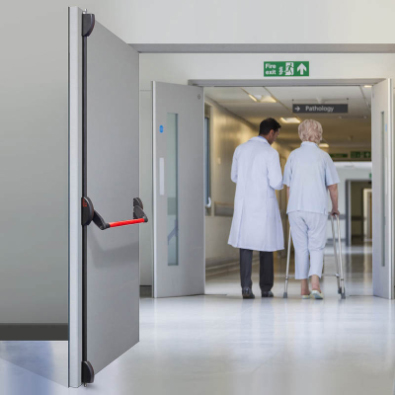 La solución motorizada para puertas antipánico cortafuego de edificios con una considerable afluencia de público, que satisface las necesidades de aquellos que buscan un sistema de seguridad completo y certificado con un rendimiento muy alto