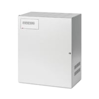 Fuente de alimentación supervisada de 24V 5 A, con cargador de baterías. Dispone de 3 salidas independientes de 24V. Amperímetro a led integrado con 10 niveles, indicación de sobrecarga. Dispone de 2 salidas de relé independientes (1 ausencia de red programable y 1 de fallo de batería). Tamper de apertura. Capacidad de baterías hasta 18 Ah. Dimensiones: 373 x 310 x 175 mm. Certificada EN 54-4.