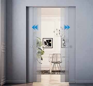 Eclisse Syntesis® Luce Extensión, este accesorio permite abrir y cerrar simultáneamente las dos puertas moviendo una sola hoja.