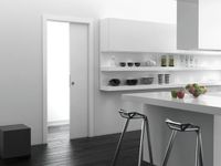 Suministro de contramarco metálico (para colgar muebles) para puerta corredera de la firma ECLISSE, modelo EWOLUTO versión enlucido pared acabada 150 mm o equivalente para hoja de cm_________ x cm__________ con guía de riel extraible de aluminio 6060 norma UNI 9006:1 y carros de deslizamiento con cojinetes de bolas revestidos con nylon 6,6 elastomérico durabilidad 100.000 ciclos UNI EN 1527, travesaño superior metálico (dintel) con junta poliestireno y red portaenfoscado 25x50 corrugada sobresaliente de la estructura .