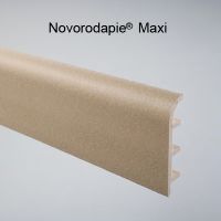 Rodapié o zócalo decorativo para cubrir la unión entre suelo y pared de diferentes o similares revestimientos Novorodapié® Maxi de Emac®. Fabricado en PVC Fibras Vegetales acabado maxigrafito Nº 86. Perfil de 2,5 m. de longitud, con valor de caravista de 60 mm., colocado según se indica en la ficha técnica del fabricante.
