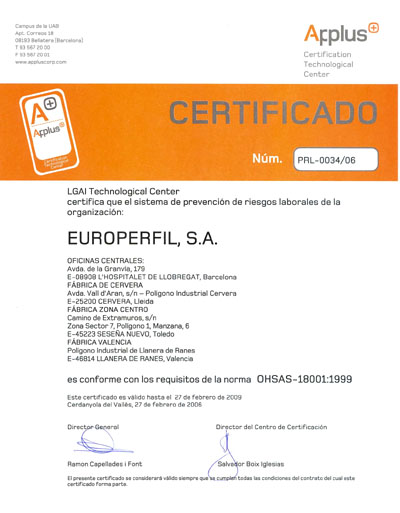 Europerfil, S.A., con 40 años de experiencia en el sector del cerramiento metálico, nació como filial de dos grupos que actualmente son líderes mundiales en siderurgia y construcción.