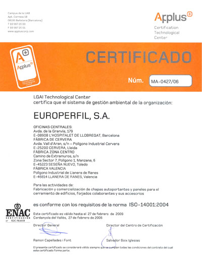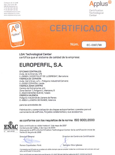 Europerfil, S.A., con 40 años de experiencia en el sector del cerramiento metálico, nació como filial de dos grupos que actualmente son líderes mundiales en siderurgia y construcción.