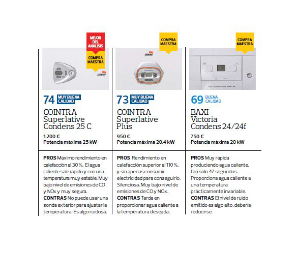 "Mejor caldera" en el análisis comparativo que ha realizado en su revista de octubre 2021.