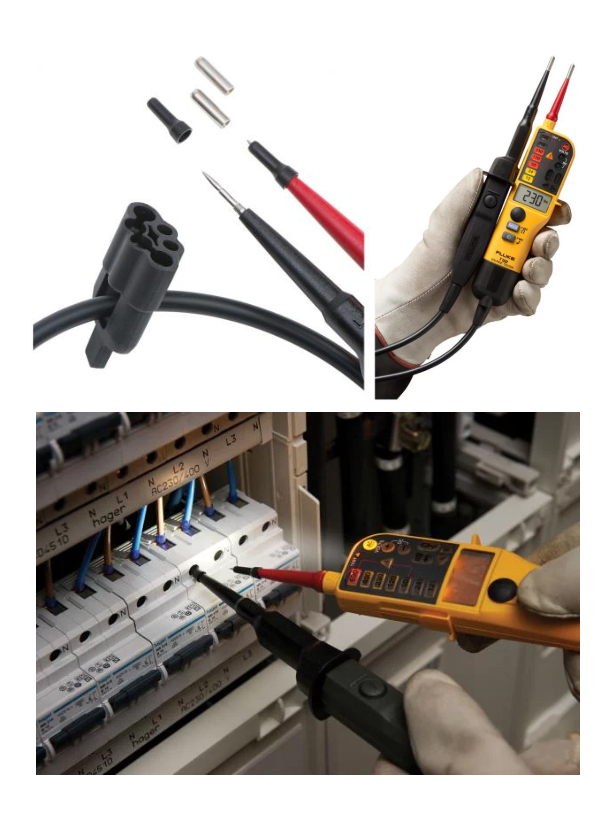 Los nuevos comprobadores eléctricos T6 de Fluke ahora permiten hacer mediciones con verdadero valor eficaz (true-rms) en cajas de conexiones abarrotadas o en conductores con terminales inaccesibles. Se ahorra tiempo, se minimizan los errores potenciales y se reduce en gran medida la posibilidad de descargas eléctricas. Los robustos comprobadores tienen una categoría de seguridad CAT III 1000V y CAT IV 600V y disponen de una pantalla retroiluminada de fácil lectura.