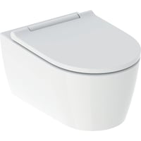 Juego de inodoro suspendido de fondo profundo Geberit iCon, compacto, forma cerrada, Rimfree, con asiento y tapa del inodoro: T'=49cm, Función de caída amortiguada'=Sí, Anclaje de sujeción rápida'=Con cerradura, Fijación'=Desde arriba, Blanco alpino / Mate