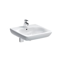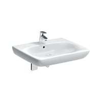 Lavabo de diseño angular Geberit Publica, con recortes, sin barreras, apto para personas con demencia: 70x55cm, Toma de grifo=Centro, Rebosadero=Sin, blanco alpino / Mate