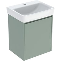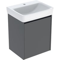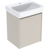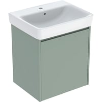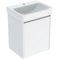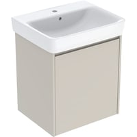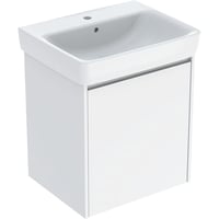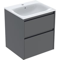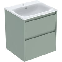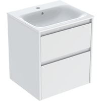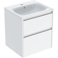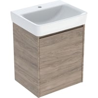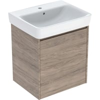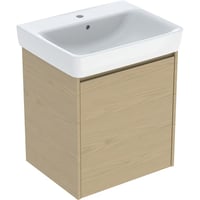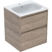 Juego de lavabo para mueble Geberit Selnova Square, borde fino, dos cajones, mueble bajo para lavabo: 55x62.1x48cm, Ancho de lavabo=55cm, Lavabo: blanco, Cuerpo, Frontal: nogal hickory / Melamina con textura de madera