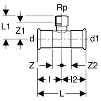 Te Geberit serie Mapress Acero Inoxidable con rosca hembra: d=76.1mm, Rp=3/4″, d1=76.1mm