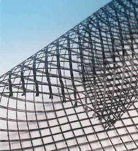 Malla de fibra de vidrio, tipo AR, resistente a los álcalis, con apresto especial, módulo elástico medio a tracción de 67 Gpa, 250 g/m2, paso de malla 21x21 mm, rollo de 20m x 88 cm, Mapegrid G 220 de Mapei ref.7327021