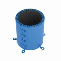 Sistema de sellado de paso de tuberías combustibles de grandes diámetros compuesto de una carcasa metálica prefabricada de 150 mm de alto que incorpora un material intumescente expansivo.