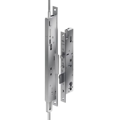Esta combinación de cerraduras es apta para su uso en salidas de emergencia y vías de evacuación según la norma EN 179 y EN 1125 en puertas antipánico con barra de empuje horizontal.