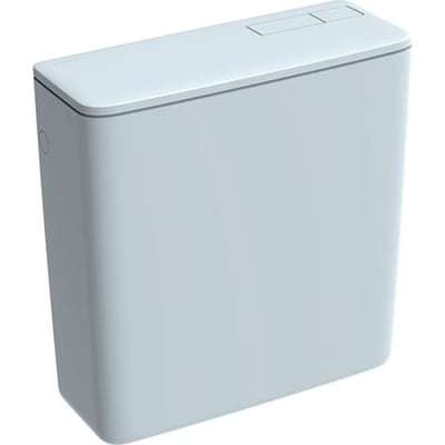 Cisterna vista Geberit AP128, doble descarga, conexión de suministro inferior a la izquierda o a la derecha: Blanco alpino