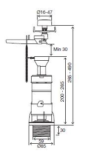 - Pulsador de cromo autoajustable con roseta para cisternas con orificios en - la tapa de Ø 16 a Ø 40 mm.