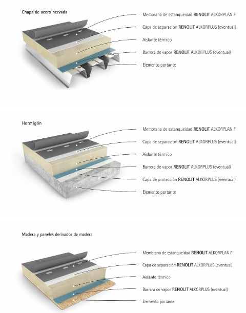 Alkorplan F - Sistema independiente lámina vista, soporte hormigón