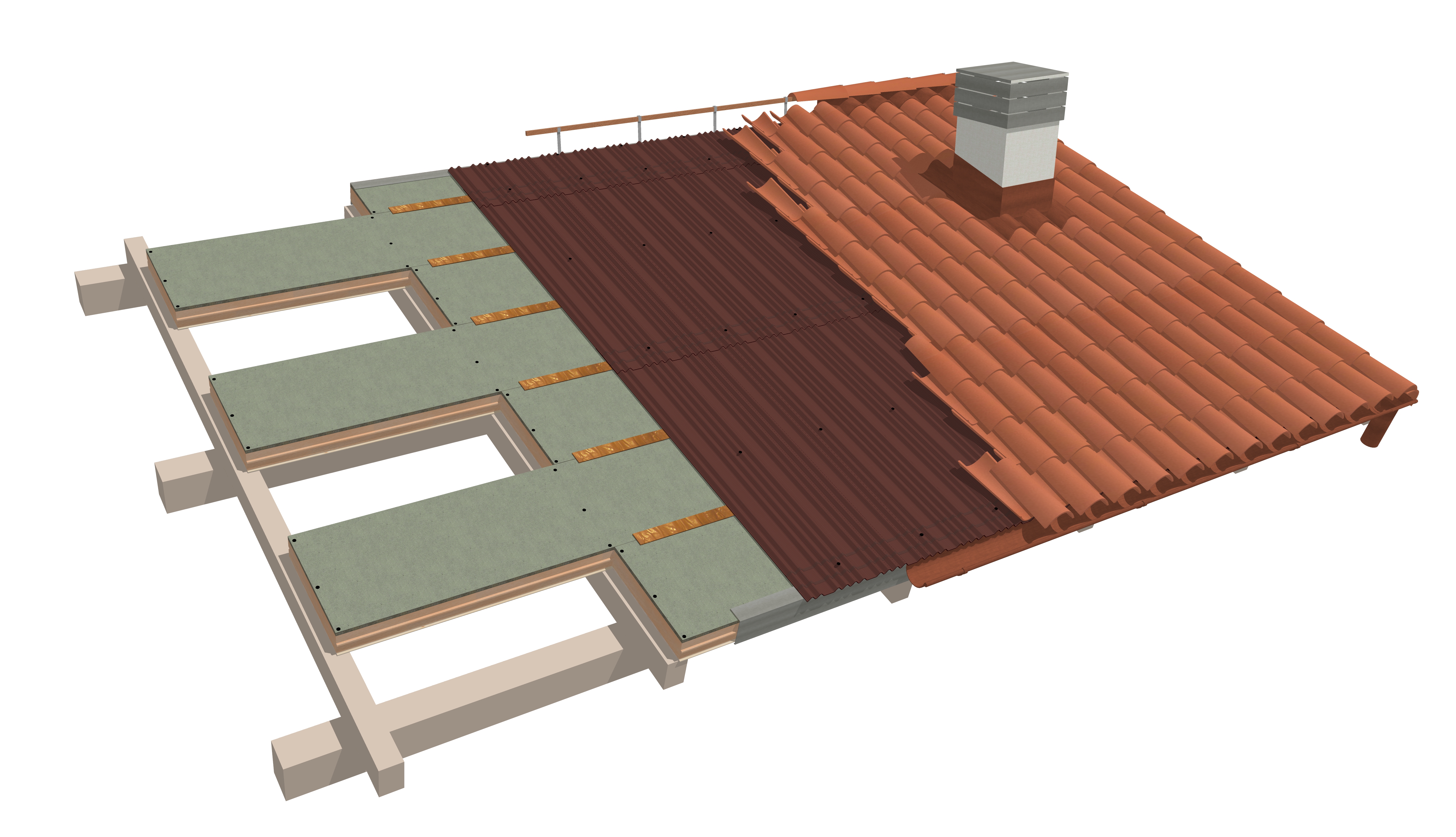 Sistema Integral de cubierta Onduline para Teja curva - BT-150Plus DRS - Panel sándwich Ondutherm H19+A100+FAB10