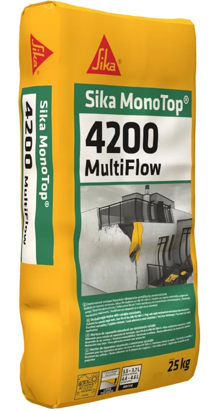 Mortero de reparación estructural Sika Monotop®-4200 Multi Flow aplicado a mano en regeneración de hormigón (Espesor: 2 cm)