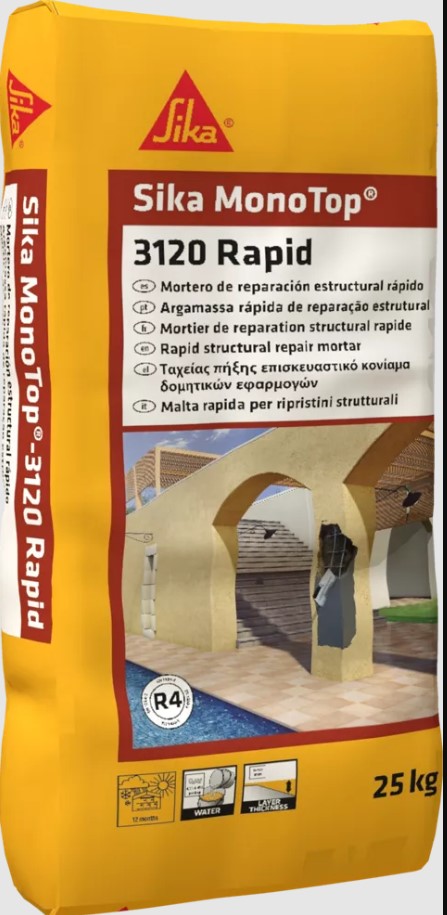 Mortero de reparación estructural Sika MonoTop®-3120 Rapid aplicado a mano en regeneración de hormigón (Espesor: 2 cm)