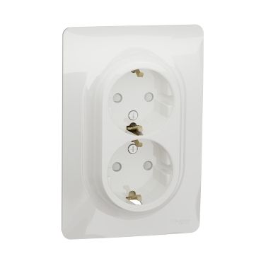 Enchufe Schuko doble, referencia NU206718 de la serie New Unica de Schneider. Color: blanco polar