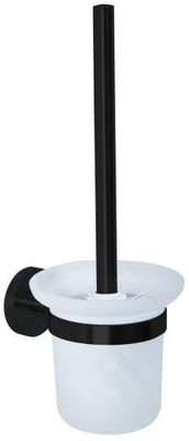 Escobillero NOFER, fabricado de acero inoxidable AISI 304 acabado negro y recipiente de vidrio esmerilado. Dimensiones: 310 alto x 115 ancho x 142 fondo (mm).
