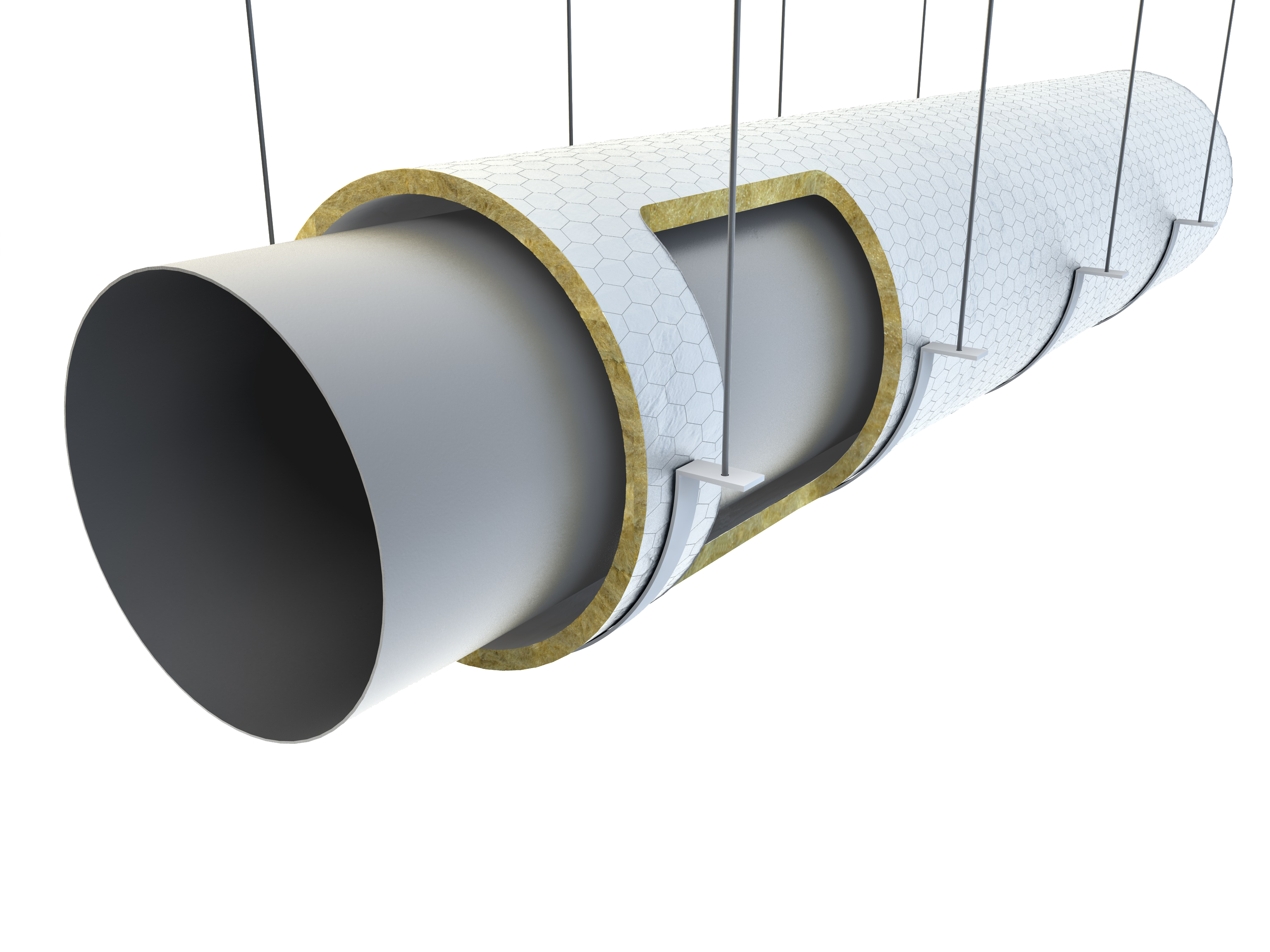 AF FIREGUARD 3 es una protección flexible certificada de acuerdo con la norma EN 1366-1 para garantizar un rendimiento en clase EI 120/180 en presencia de pasos de conductos metálicos expuestos al fuego desde el exterior. El producto es una estera de lana de roca acolchada sobre una malla metálica. La cara externa visible está cubierta con una lámina de aluminio retinado, mientras que la cara interna tiene un tejido de lana de vidrio tratado con un producto ablativo especial. Gracias a su espesor reducido, de solo 30 mm, la estera se puede aplicar fácilmente incluso en perfiles curvos y no sobrecarga las varillas de sostén, certificadas sin protección. AF FIREGUARD 3 es un producto ideal para la protección contra el fuego de los conductos de suministro de aire metálicos.