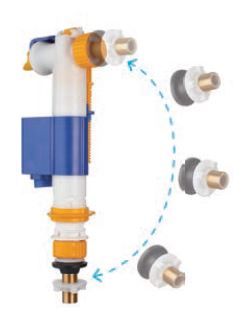 - Conexión del suministro de agua lateral e inferior en la misma válvula de entrada.