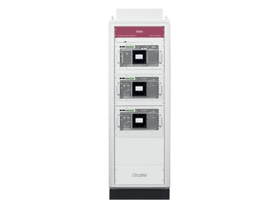 Generador estático de reactiva multinivel de 207 kvar, SVGm-4WF-207C-400 de Circutor Alimentación en alterna Tensión nominal 208 … 400 V~ F-F (± 10 %) Frecuencia 50 / 60 Hz ± 5 % Consumo 6210 W (max.) Categoría de la instalación 4 kV, CAT III Clase 1 Características eléctricas Corriente máxima (fase) 300 A (RMS) Corriente de cresta Ipk 84 kA pico Corriente de cortocircuito condicional (Icc) 40 kA Factor de Simultaneidad (RDF) 1 Sistema de tierras TN, TT Circuito de medida de corriente Consumo 1,5 VA por transformador Relación de transformación Transformador: 5/5A … 5000/5A Comunicación serie Tecnología / Tipo RS-485 Protocolo Modbus/RTU Comunicación red Tecnología / Tipo Ethernet Protocolo TCP/IP, Modbus TCP Características ambientales Temperatura de trabajo -10 … +45 ºC Temperatura de almacenamiento -20 … +50 ºC Humedad relativa (sin condensación) 0 …. 95 % Grado de protección IP 21 / IK10 (IP 41 bajo demanda) Instalación, lugar, posición. Instalación en entornos tipo A Características mecánicas Ruido < 66 dBA Peso Neto (kg) 310 Tamaño (mm) ancho x alto x fondo 608 x 1890 x 812 (mm) Prestaciones Filtrado / tiempo de respuesta < 100 µs Compensación de potencia reactiva (Kvar) Seleccionable: 0,7 inductivo … 1 … 0,7 capacitivo Montaje en paralelo Hasta 100 dispositivos de diferente calibre. Conexión de los transformadores solo en unidad Master. Normas Normas IEC 61000-6-4, UNE-EN 55011, IEC 61000-6-2, IEC 62477-1, IEC 61439-1, IEC 60721-3-3 (Indoor conditioned) Seguridad eléctrica, Grado de contaminación Categoría 2 Seguridad eléctrica, Altitud máx. (m) 3000 (2000 m without performance degradation)
